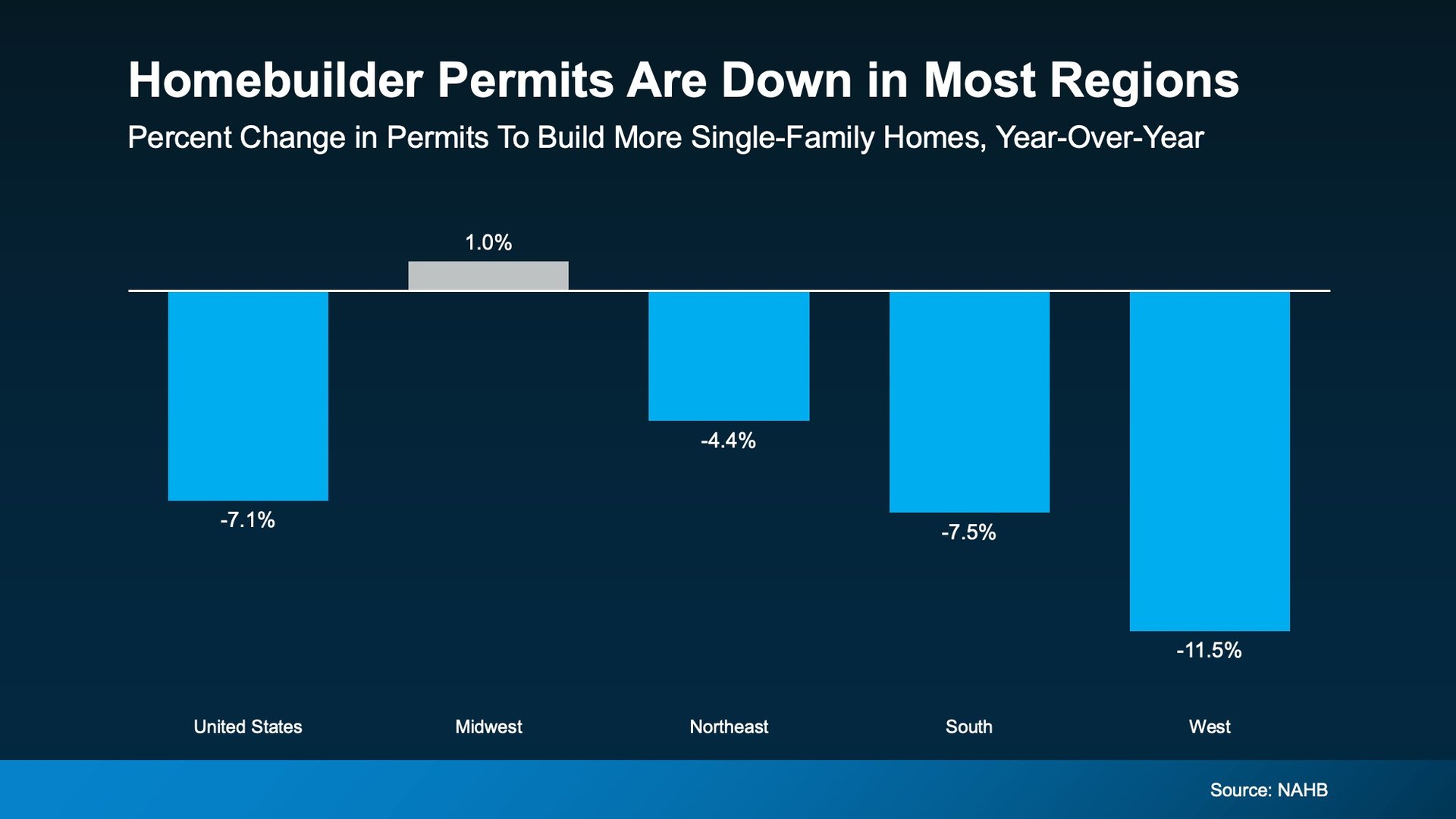 While inventory varies by location, the nationwide pattern is clear: single-family permits are down in nearly every region, with only one area seeing a slight uptick, and even that is essentially flat.